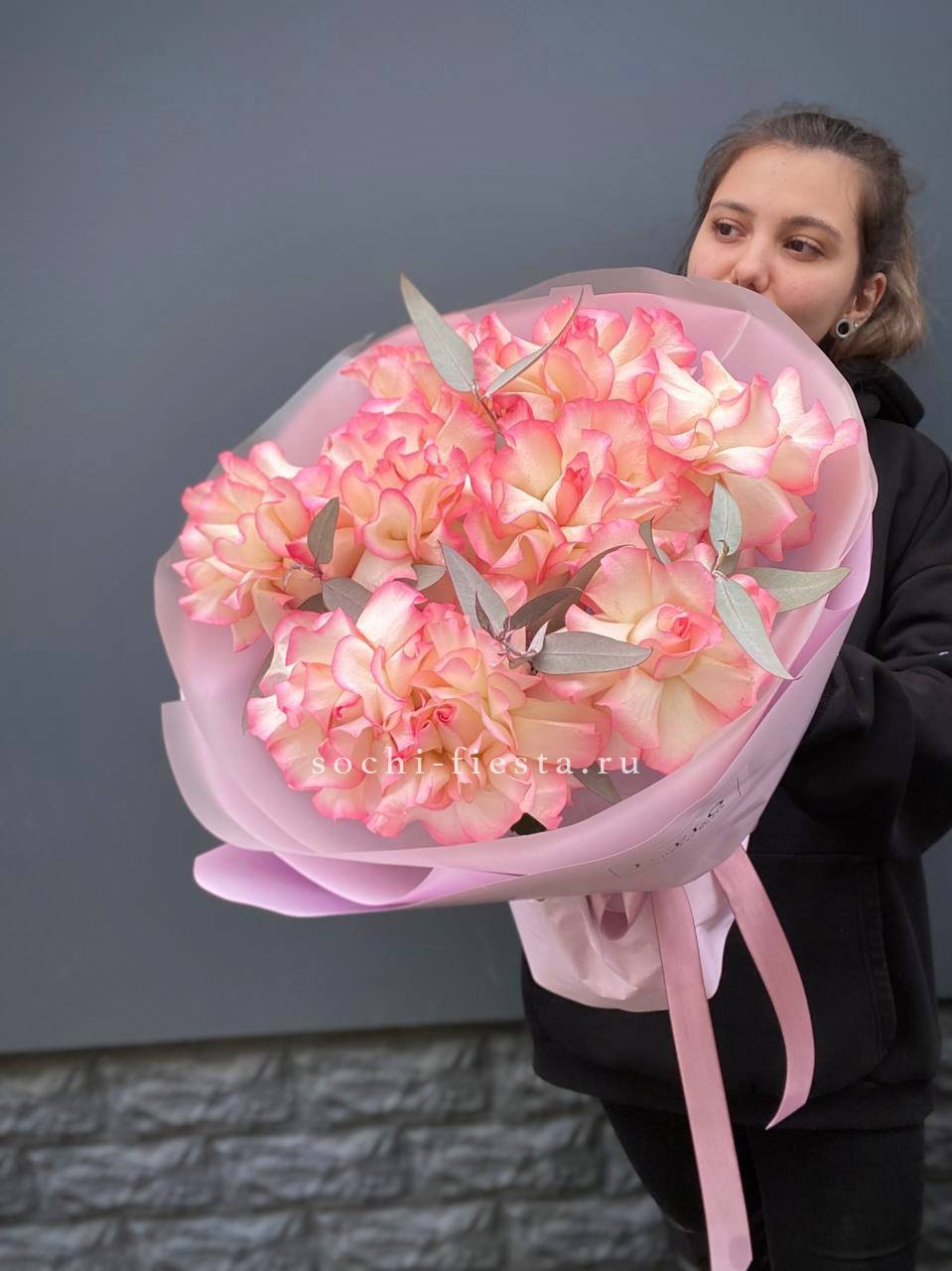вывернутые розы, эвкалипт, лента, авторская упаковка.