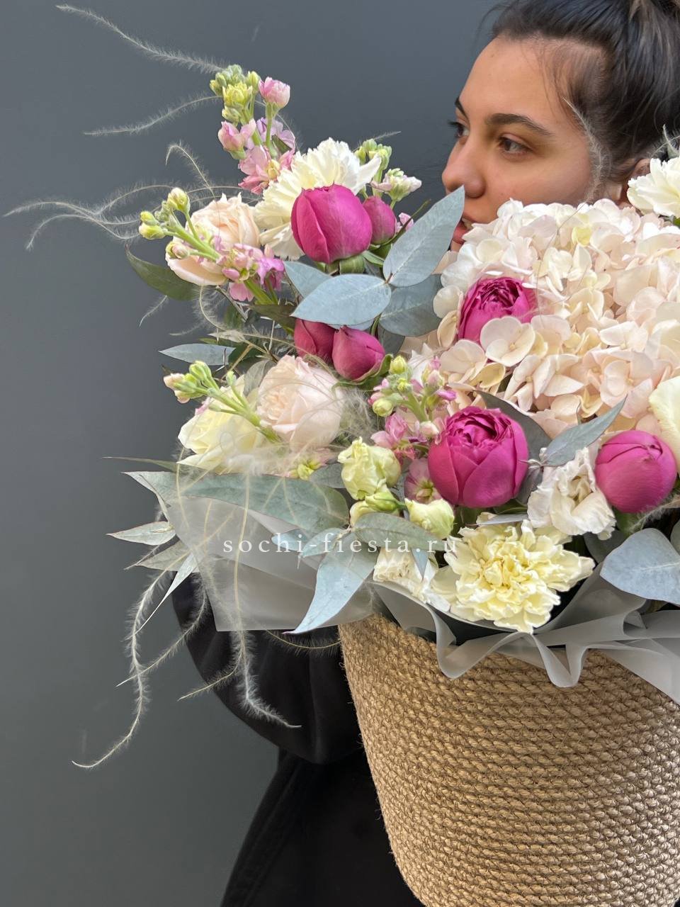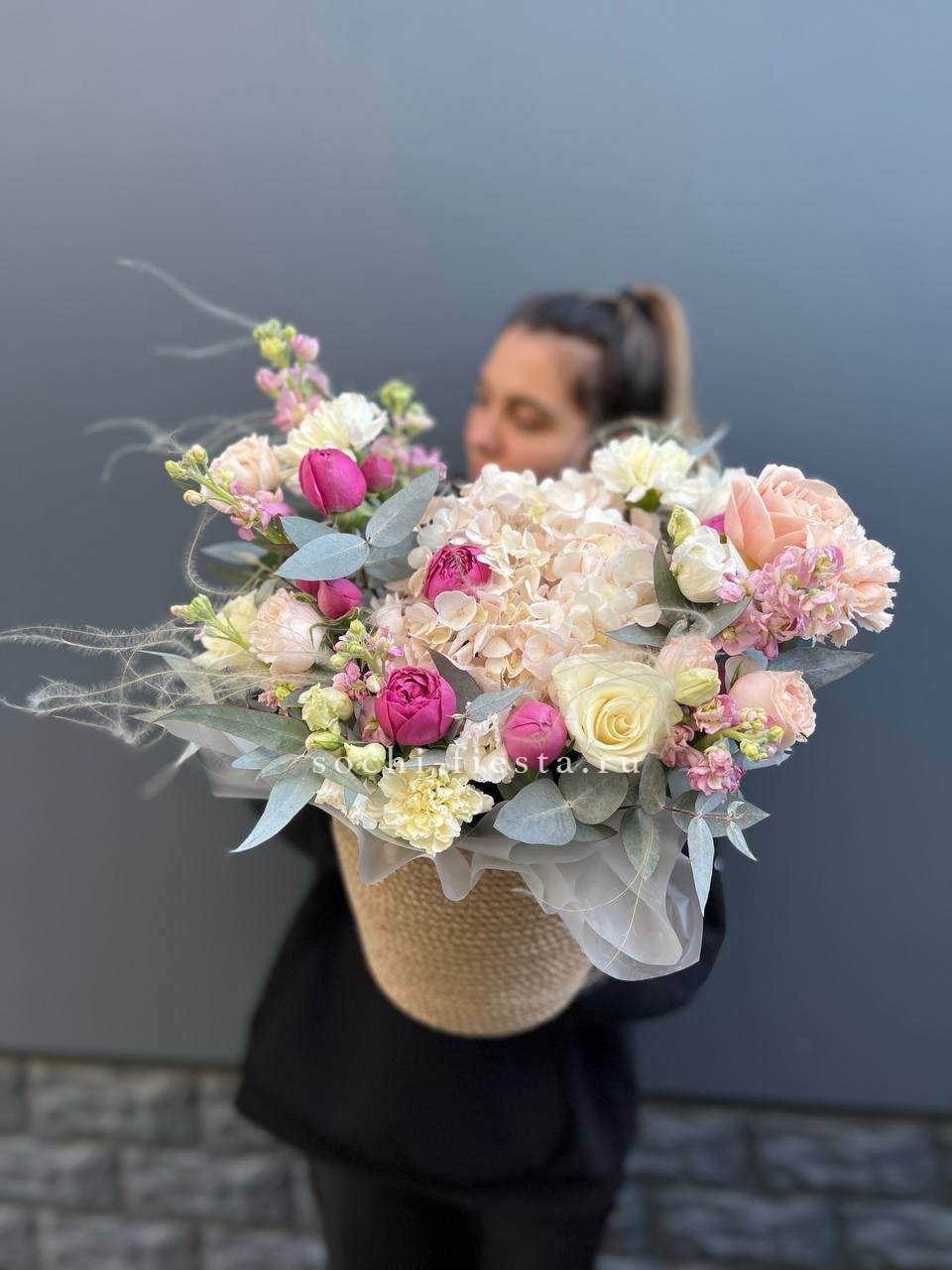 Сочетание воздушной гортензии и классических гербер в одном букете. Этот микс — идеальный баланс между нежностью и стилем. Тот самый подарок, который мгновенно преображает пространство и дарит ощущение праздника. Идеальный выбор для тех, кто вдохновляет на самое лучшее.