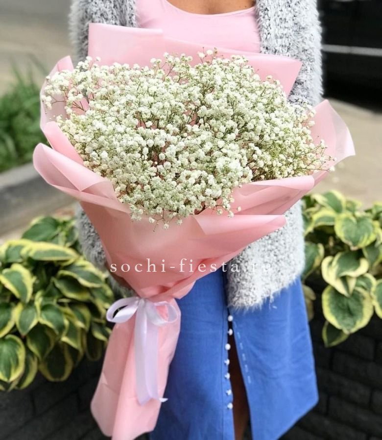 7 радужных голландских гипсофил, лента, комбинированная упаковка.