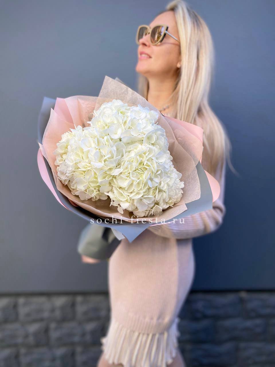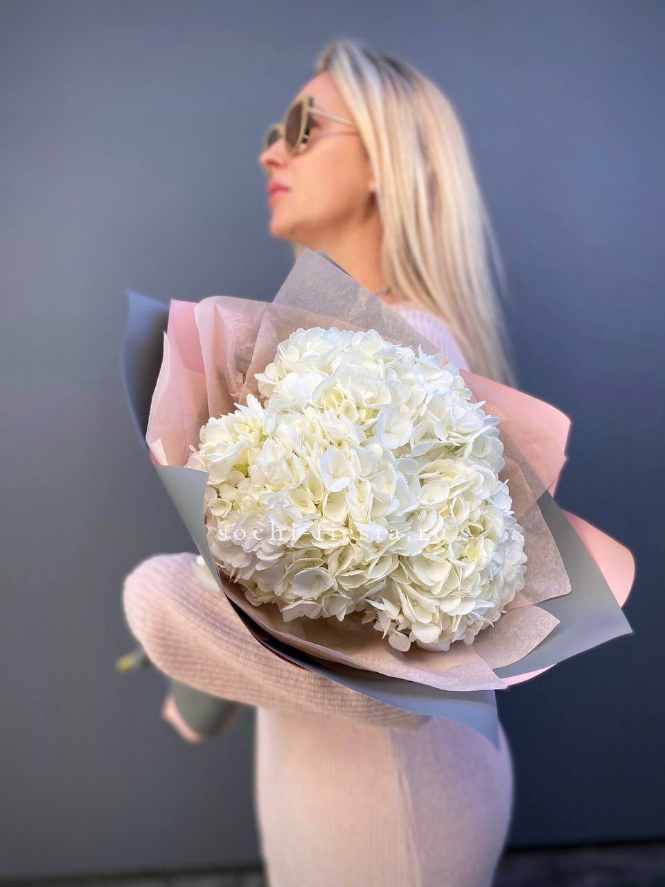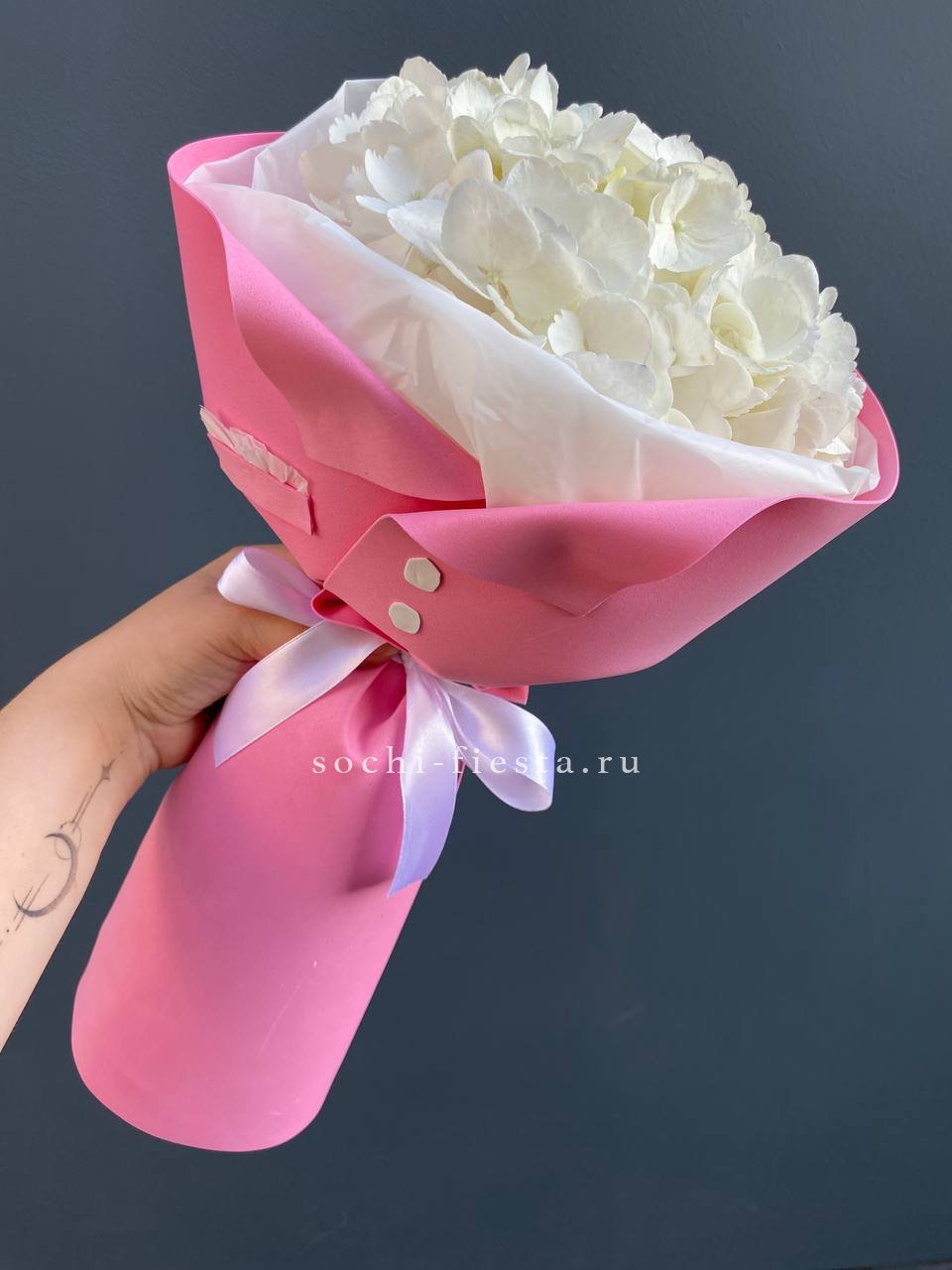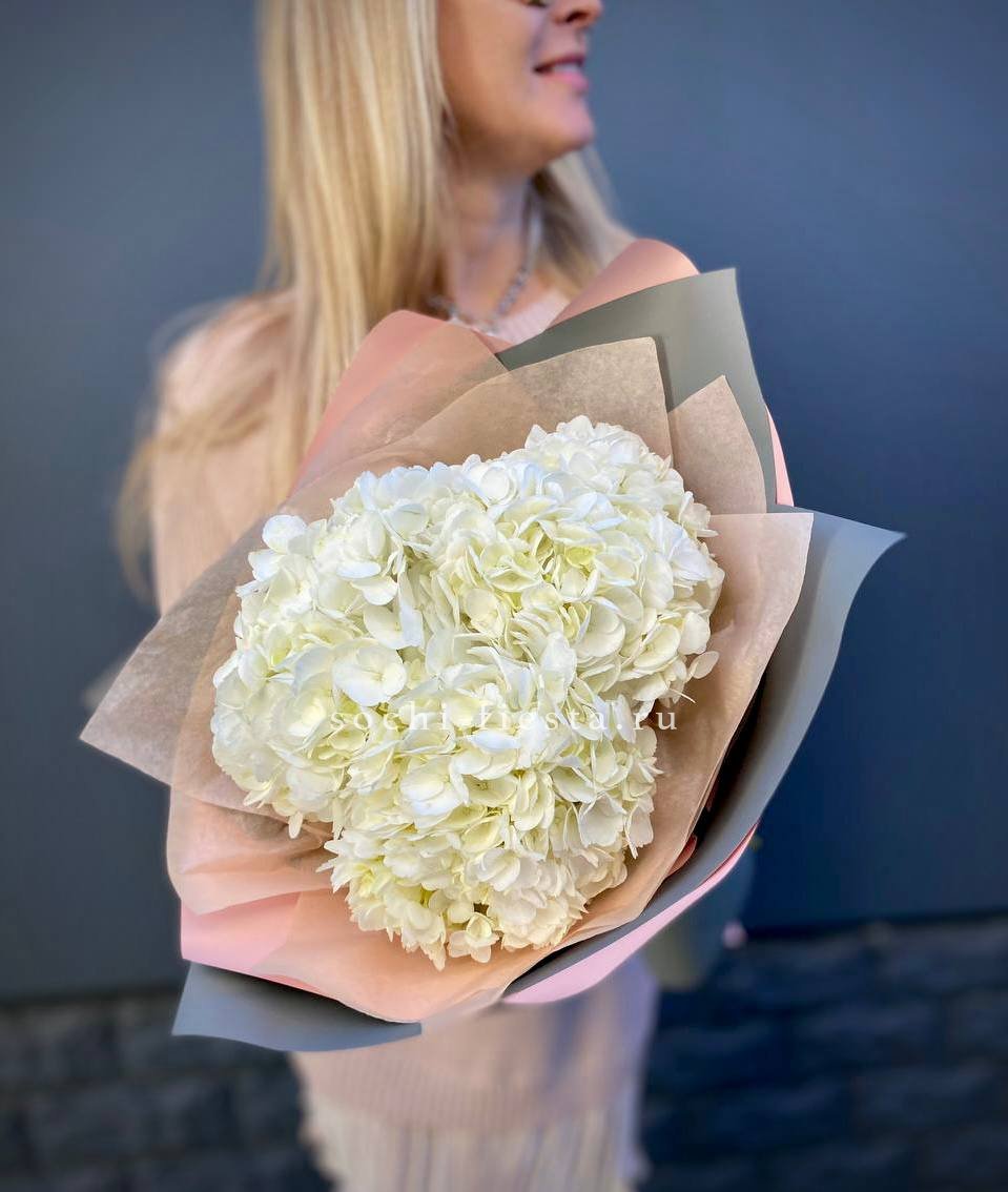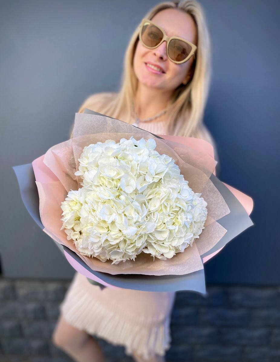 Для заказа товара "Букет из трёх белых гортензий" с доставкой в Новокузнецке нажмите в корзину