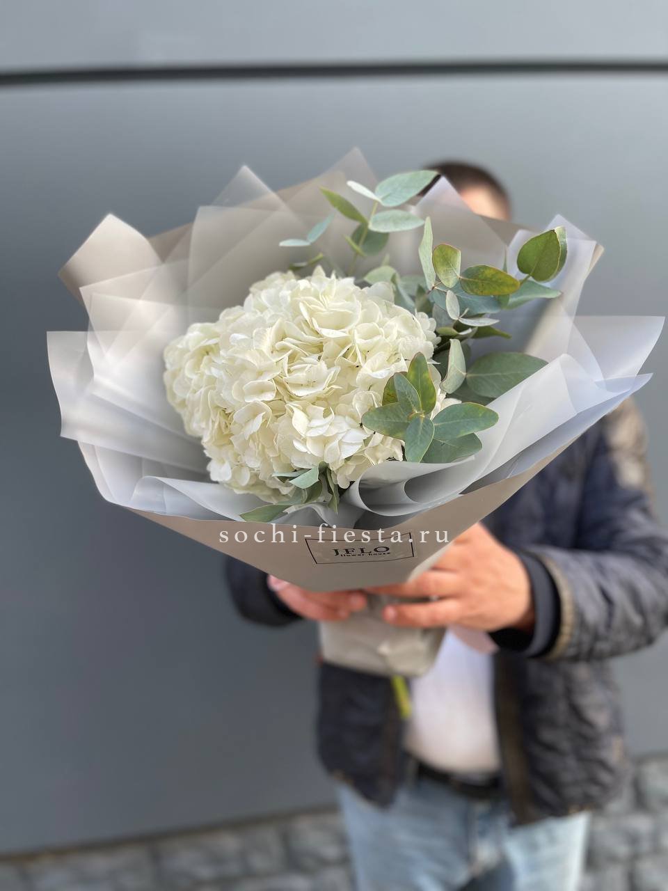гортензия, лента, дизайнерская упаковка. Цвет гортензии на выбор