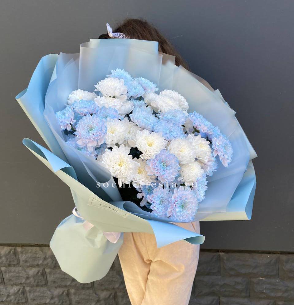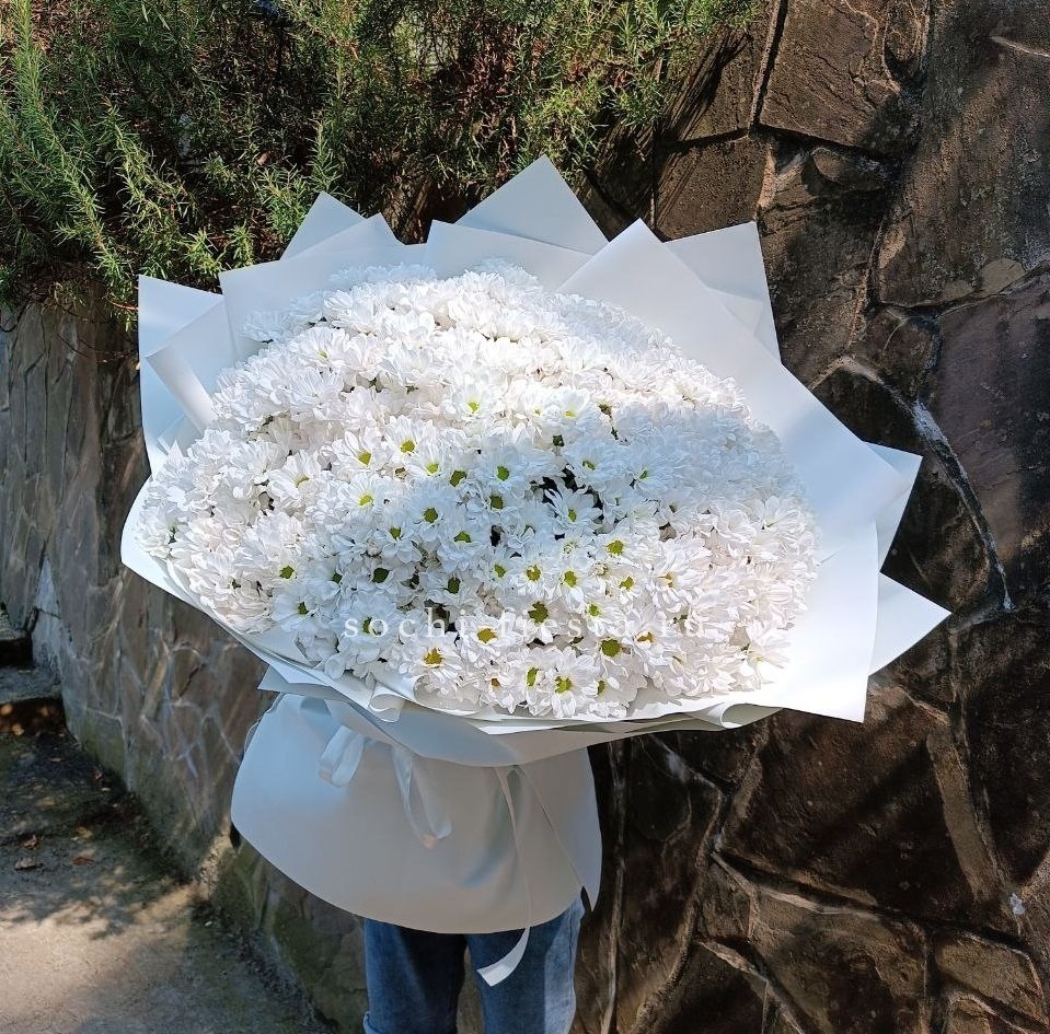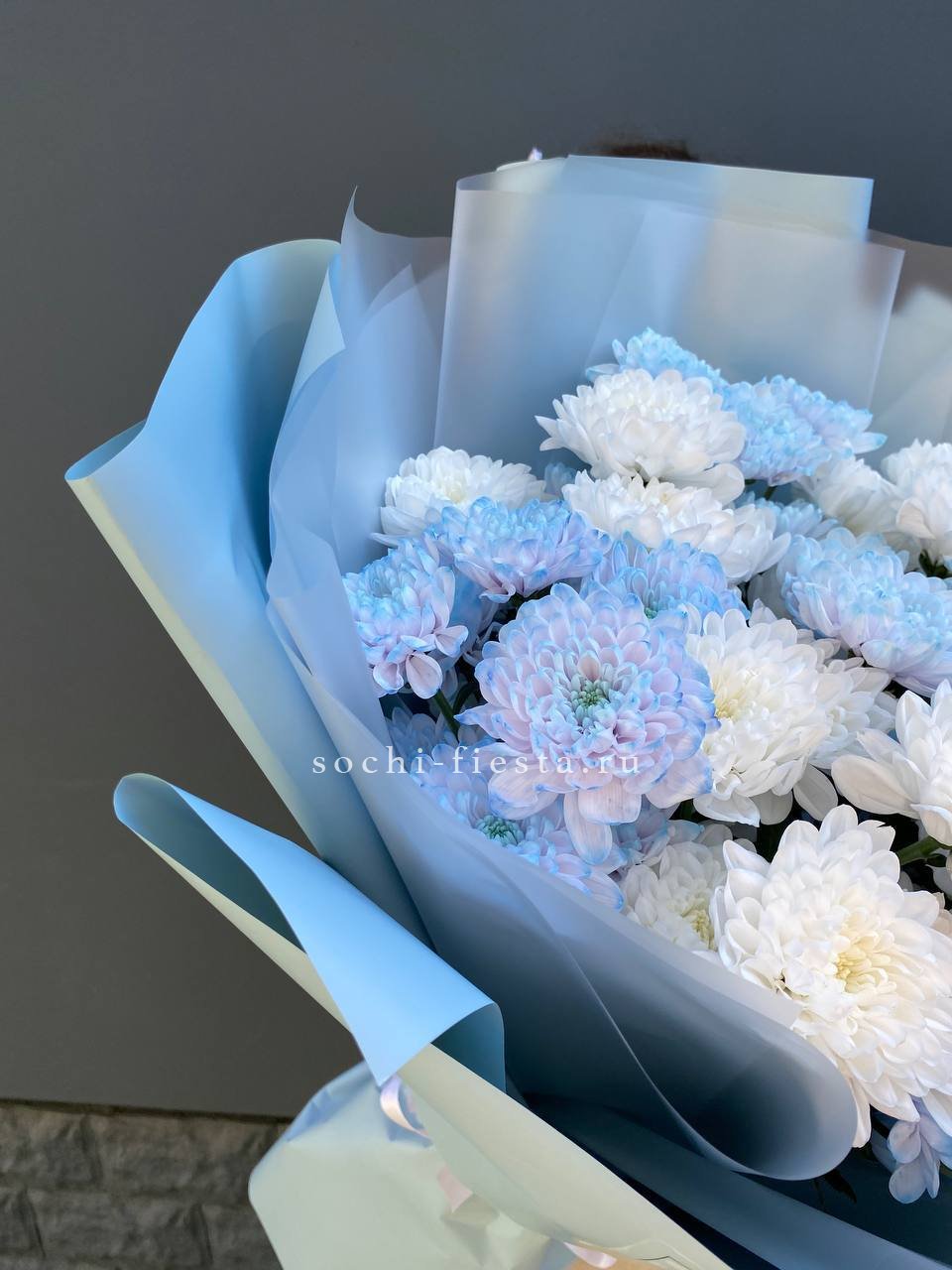 хризантема кустовая - 9 шт., лагурус, пленка,  лента.