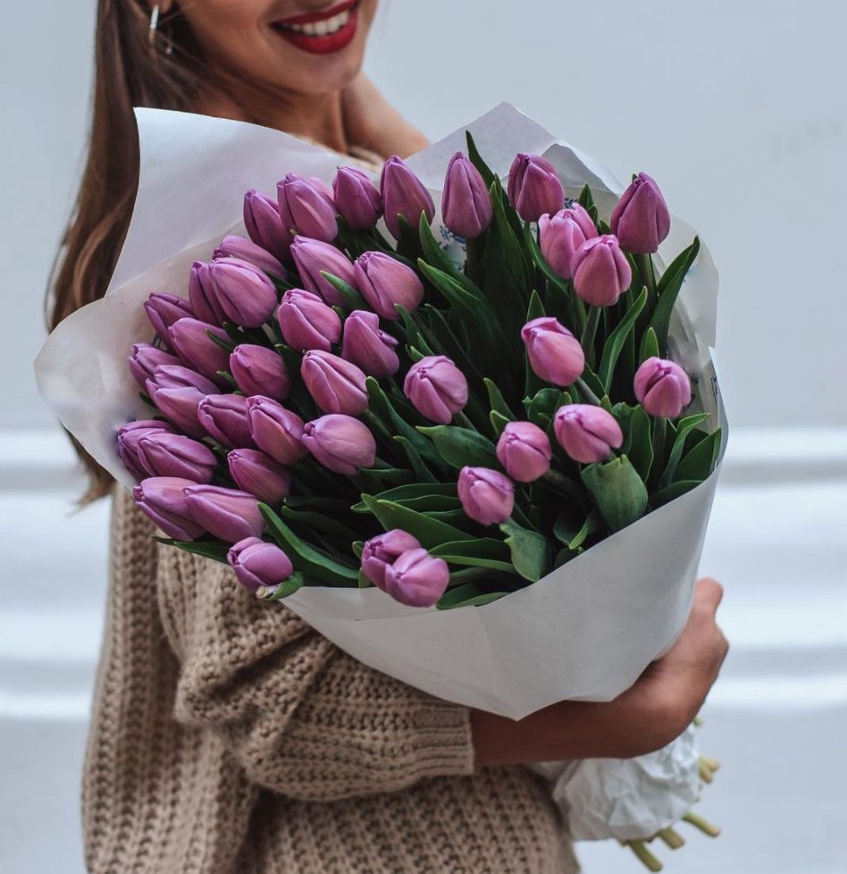 39 сиреневых тюльпанов