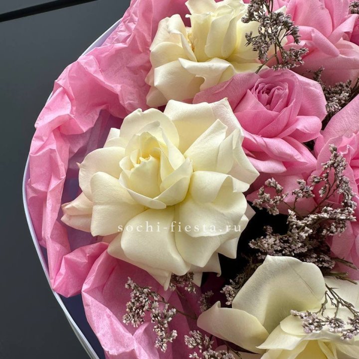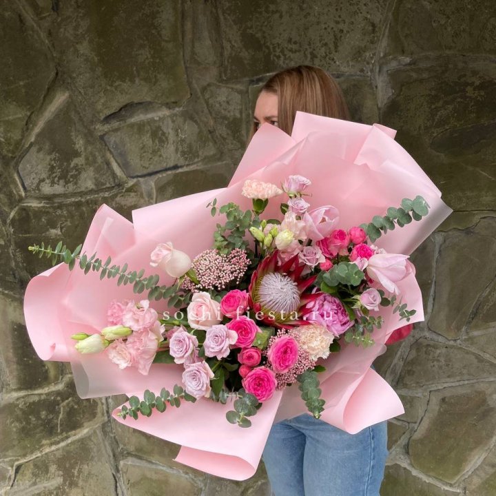 Доставка авторских букетов в Новокузнецке — в специальной упаковке, сохраняющей форму. Самовывоз из студии — основная опция в небольшом городе: клиент приходит лично и видит работу. Флорист лично передаёт крупные свадебные работы для контроля качества и сохранности.