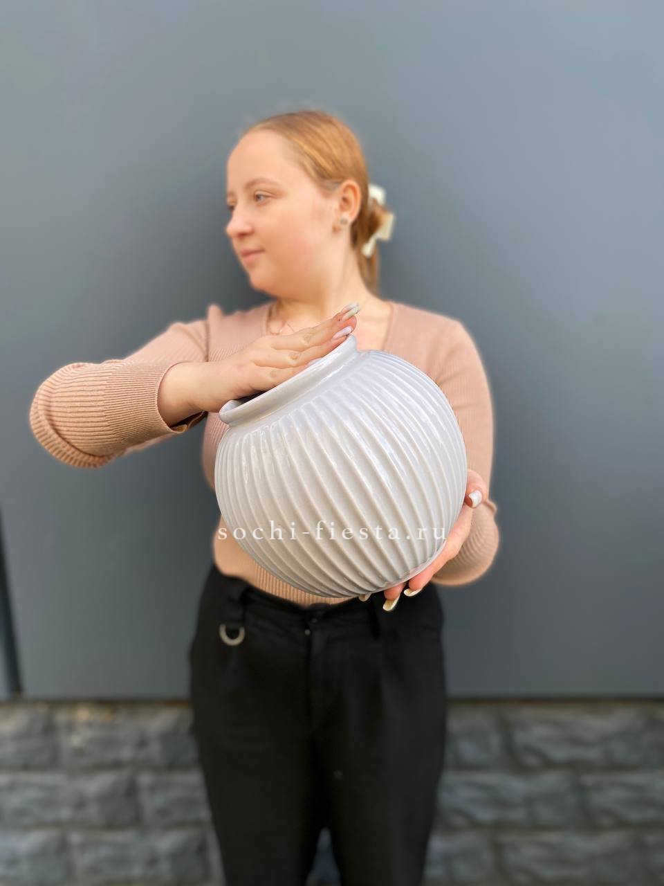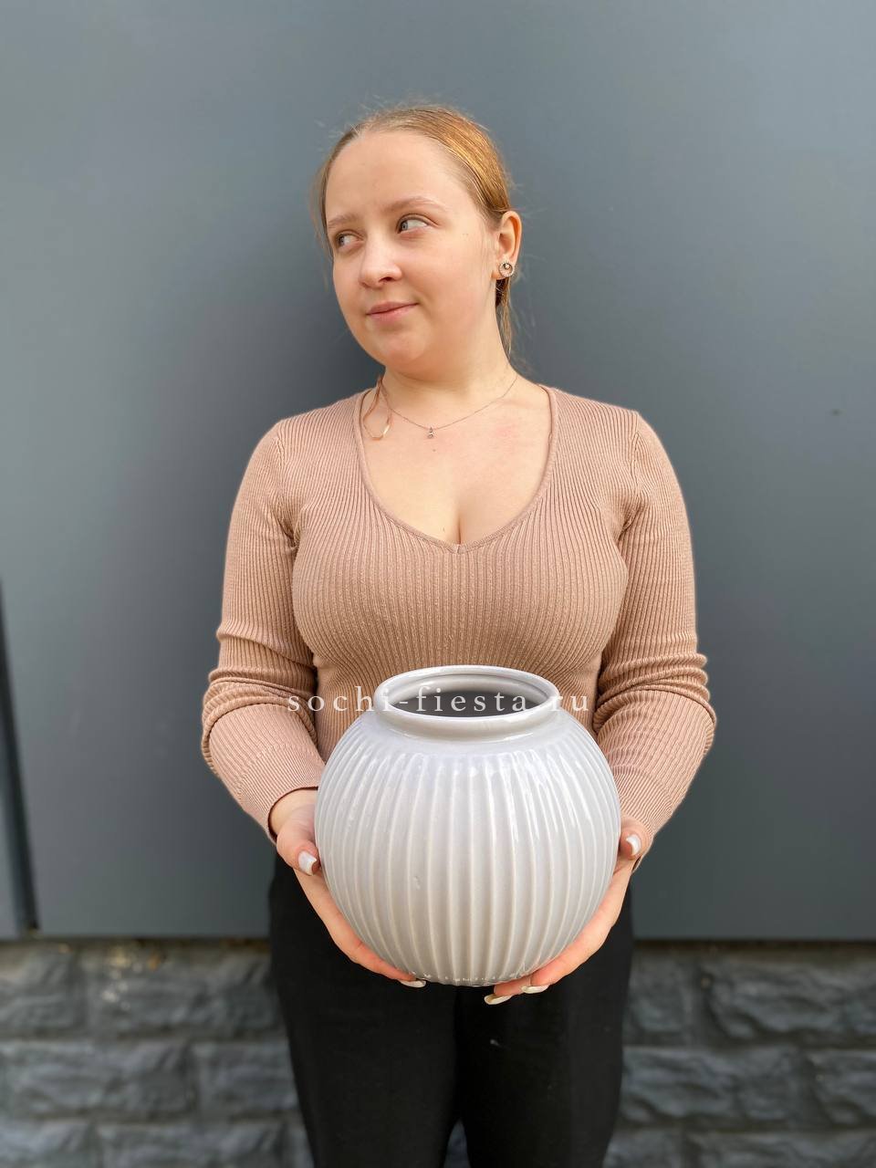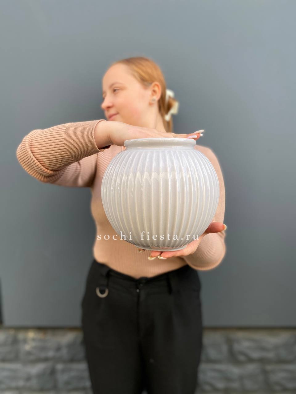 Керамическая ваза с плавными обводами и устойчивым основанием. Объем три литра позволяет разместить объемные букеты с длинными стеблями. Классическая форма дополнит любой интерьер.