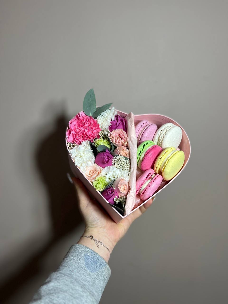 Для заказа товара "Дуо цветы и макаронсы" с доставкой в Новокузнецке нажмите в корзину