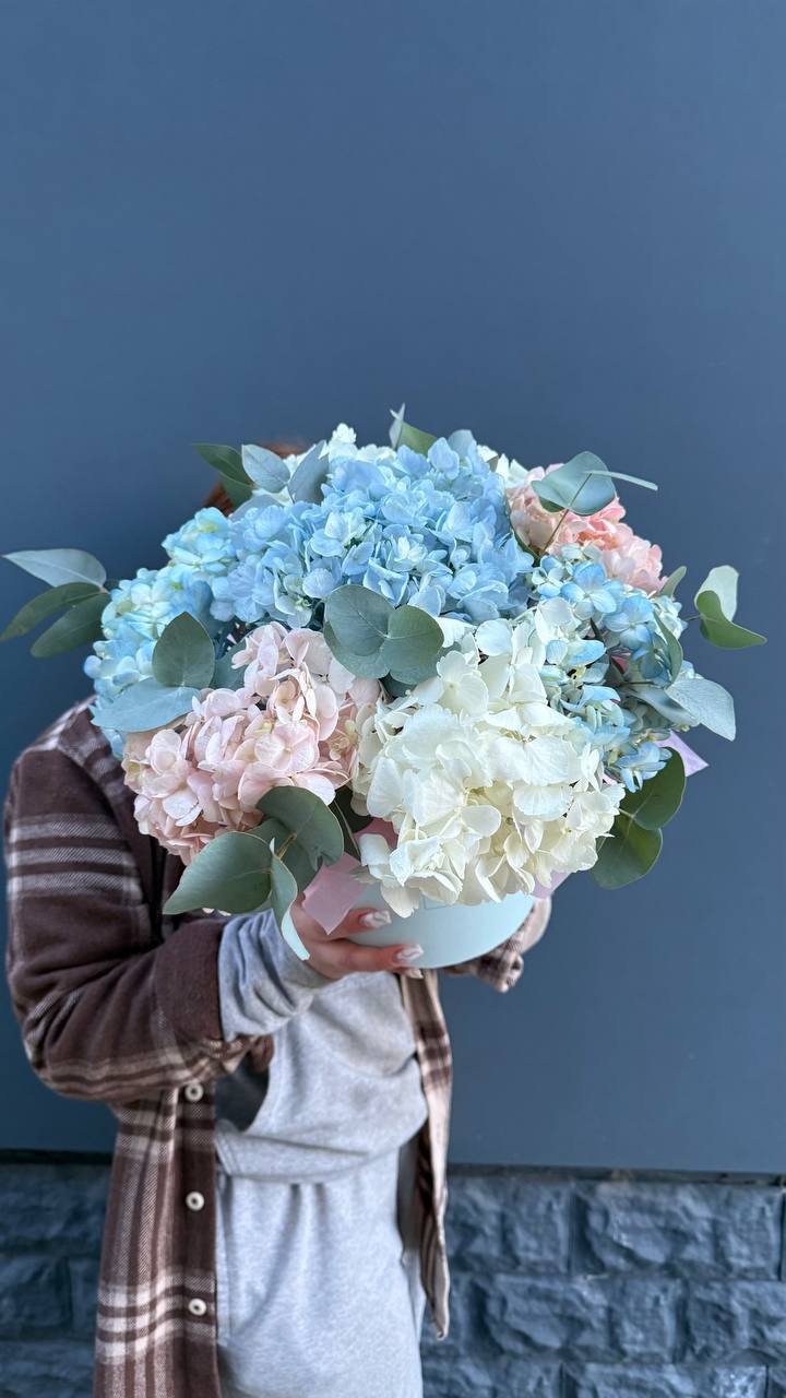 Лаконичная шляпная коробка — идеальный акцент, который подчеркивает пышность гортензий. Она станет стильным украшением любого интерьера, от классики до лофта. Тот случай, когда упаковка так же безупречна, как и само наполнение.