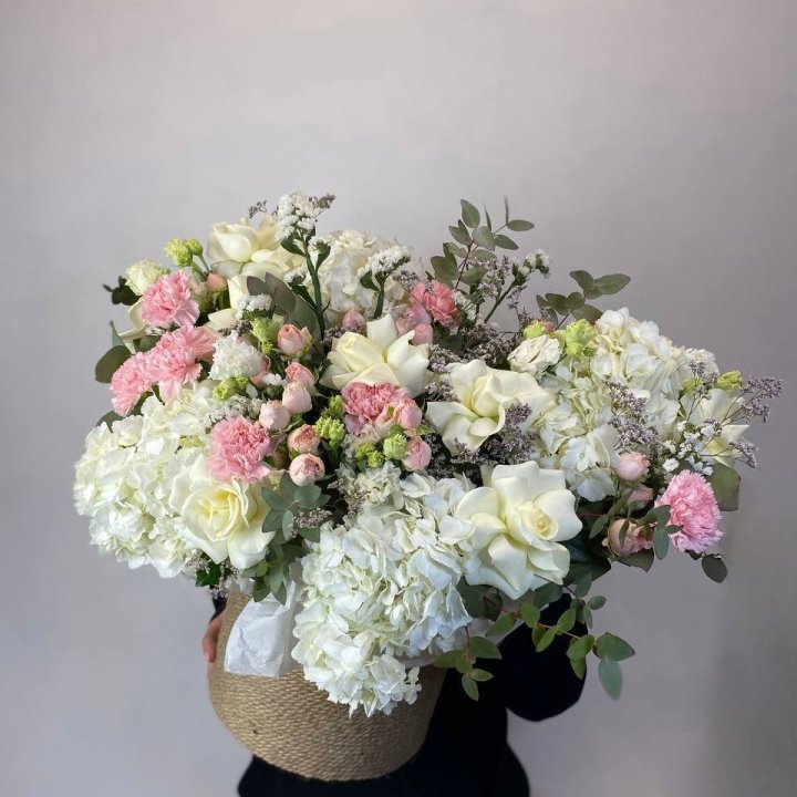 Заказ в студии Новокузнецке оформляется через сайт, Телеграм, Инстаграм, по телефону или при визите в салон. Клиент выбирает размер, палитру, наполнение, флорист подтверждает сорта и собирает композицию за 2-4 часа. Доставка — в тот же день при заказе до 14:00.