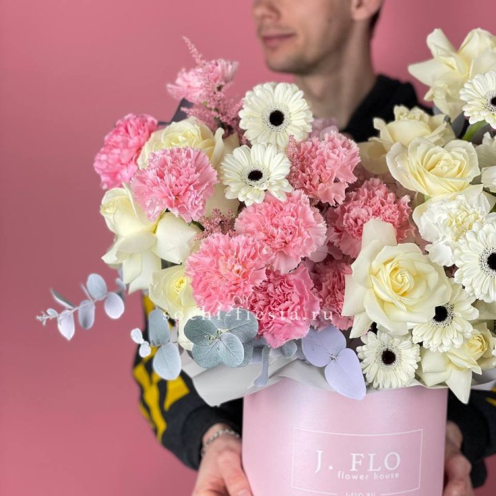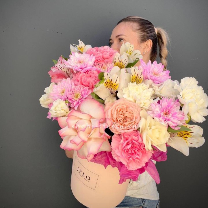 Шляпная коробка в студии Новокузнецке — практичный формат подарка для офиса, семейного юбилея, свадьбы. Композиция с флористической губкой, не требующая вазы, готовая к дарению сразу после получения. Это удобно и для отправителя, и для адресата.