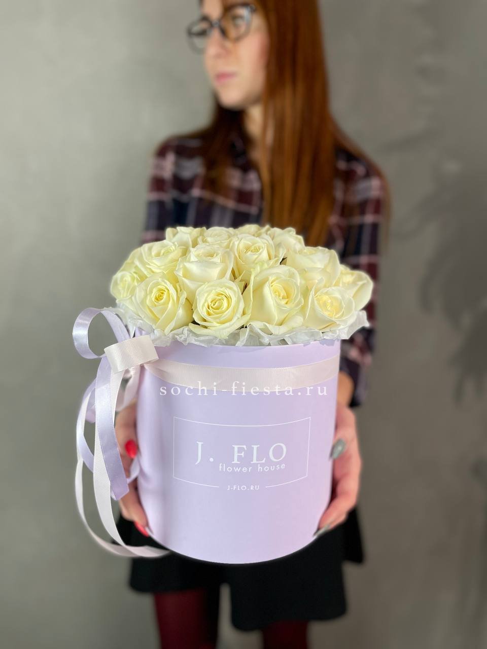 25 белых роз на фото, цилиндр D20.