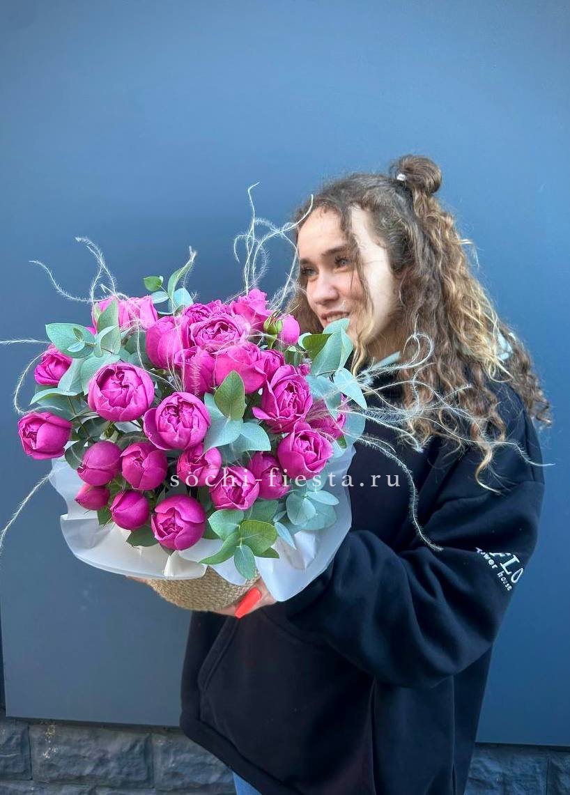 Для заказа товара "Пионовидные розы в джутовом кашпо " с доставкой в Новокузнецке нажмите в корзину