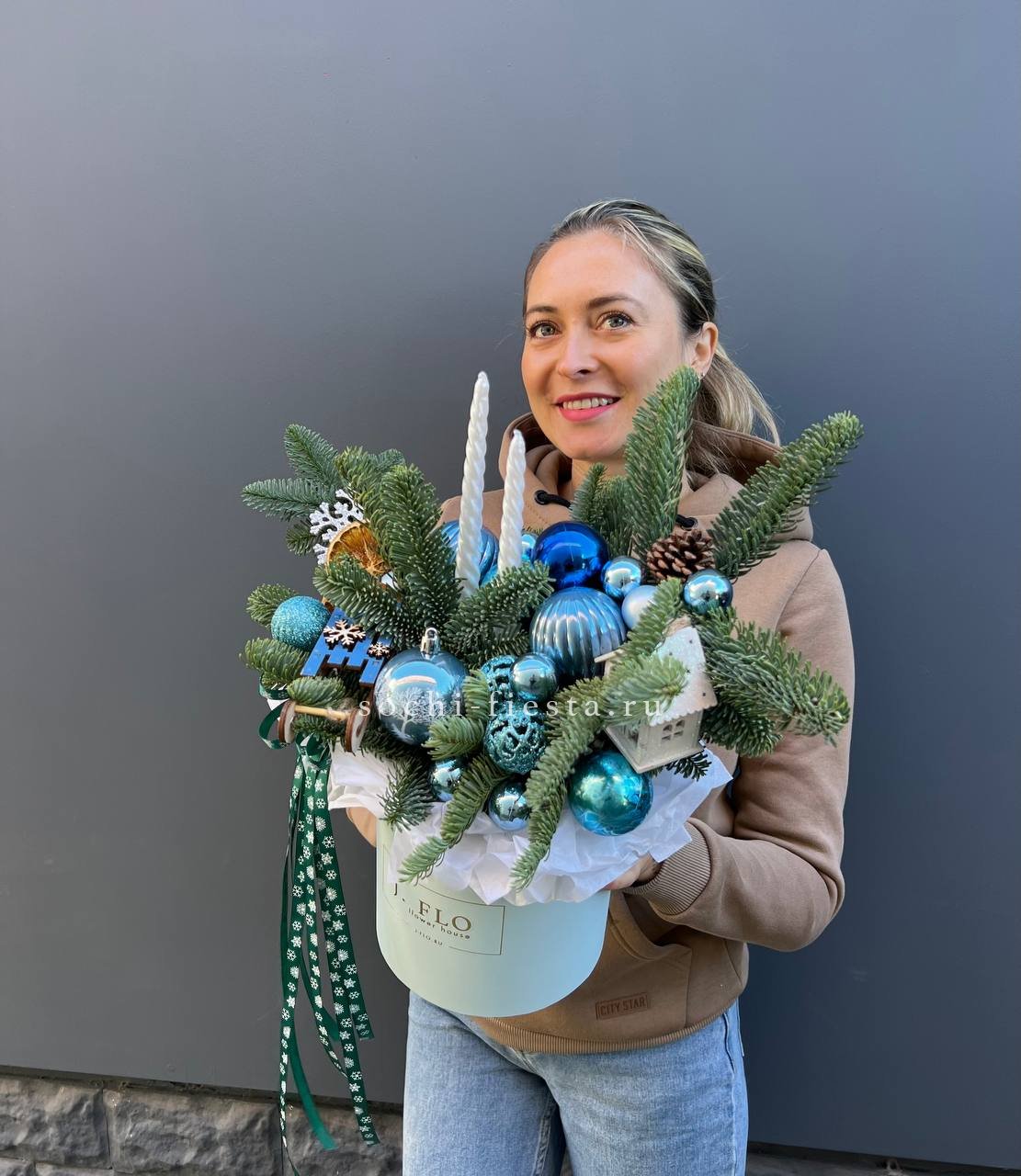 нобилис, цилиндр, оазис, свечи, новогодние игрушки, декор ВНИМАНИЕ! Готовая композиция (декор) может иметь незначительные внешние отличия от примера на фотографии.