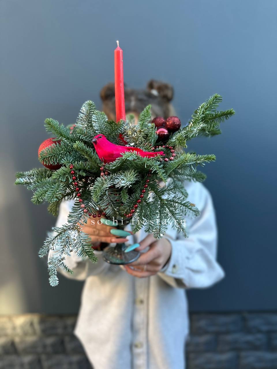 нобилис, цилиндр, оазис, свечи, новогодние игрушки, декор ВНИМАНИЕ! Готовая композиция (декор) может иметь незначительные внешние отличия от примера на фотографии.