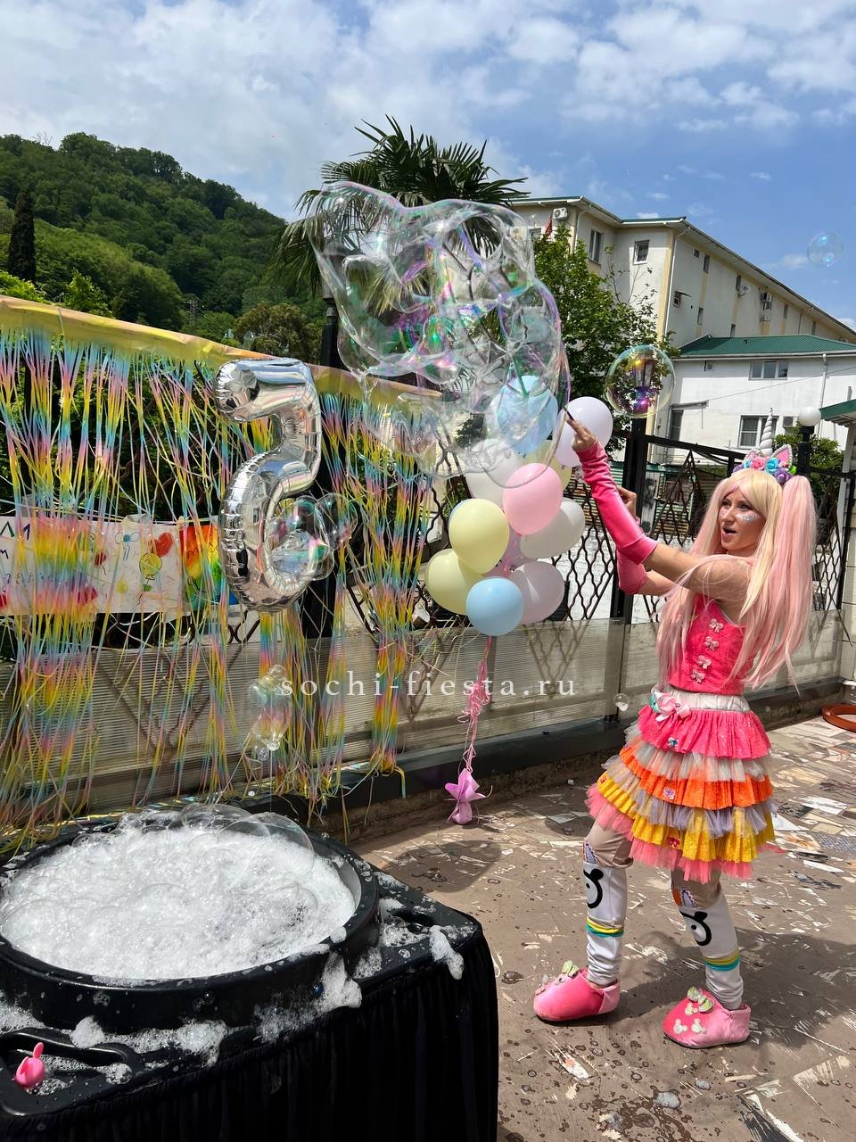 Шоу мыльных пузырей — яркое и захватывающее представление, в котором мастер создает огромные, разноцветные и необычные мыльные пузыри разного размера. В программе используются специальные техники и инструменты для формирования фантастических фигур, пузырей-гигантов и эффектных трюков. Это зрелищное шоу радует зрителей своей красотой, магией и атмосферой веселья, особенно популярное среди детей и семей.
