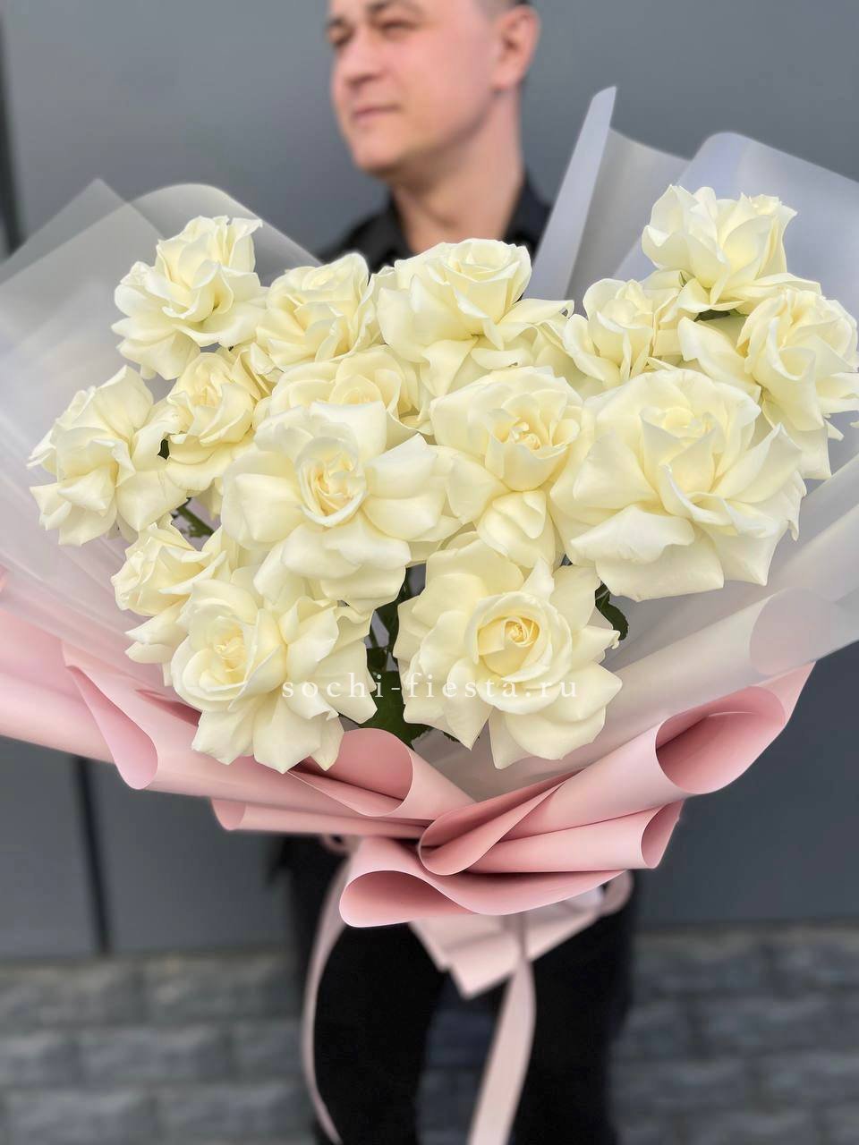 Для заказа товара "Букет из 15 французских роз Вайт дрим" с доставкой в Новокузнецке нажмите в корзину