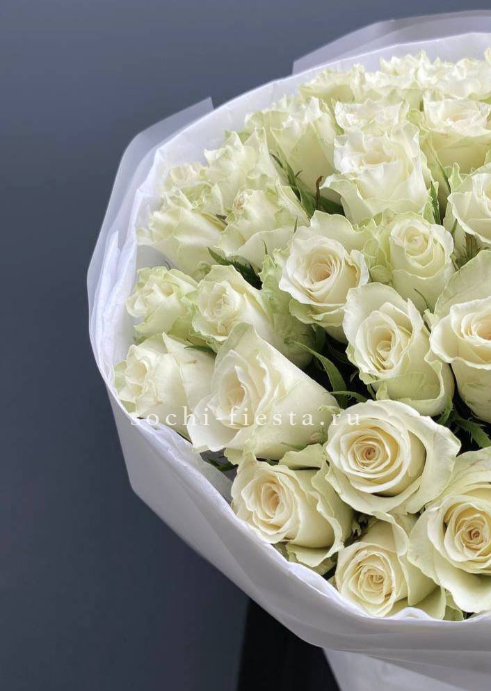 Воздушный букет из 51 белой кенийской розы