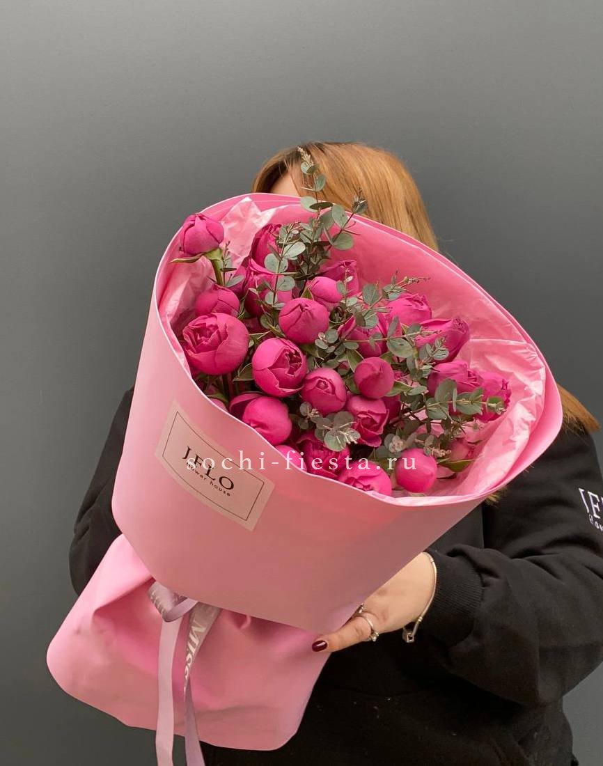 пионовидные розы мисти,  хлопка, эвкалипта, оформления.